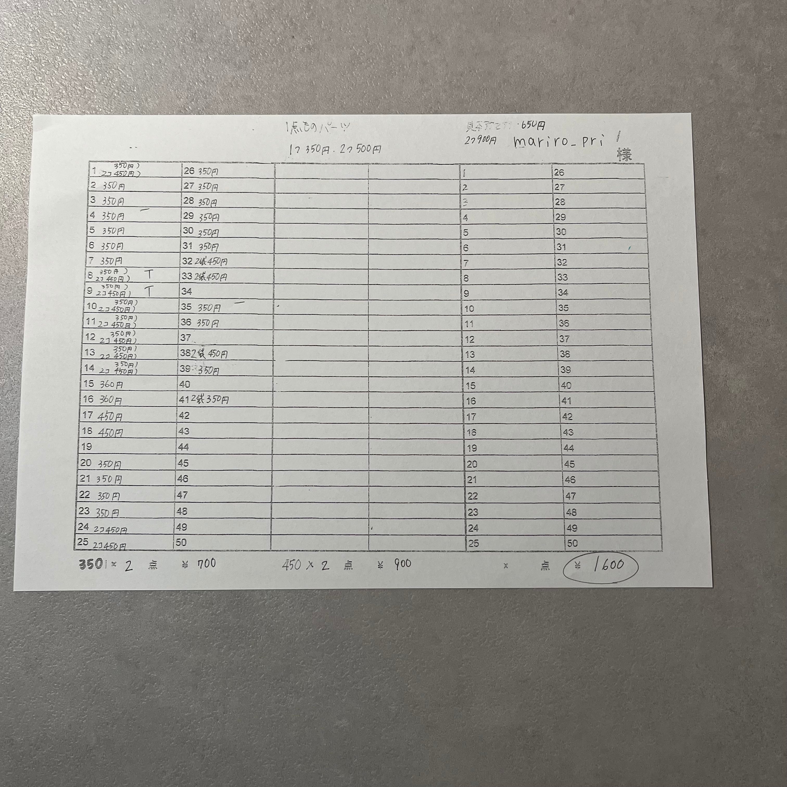 ¥1,600